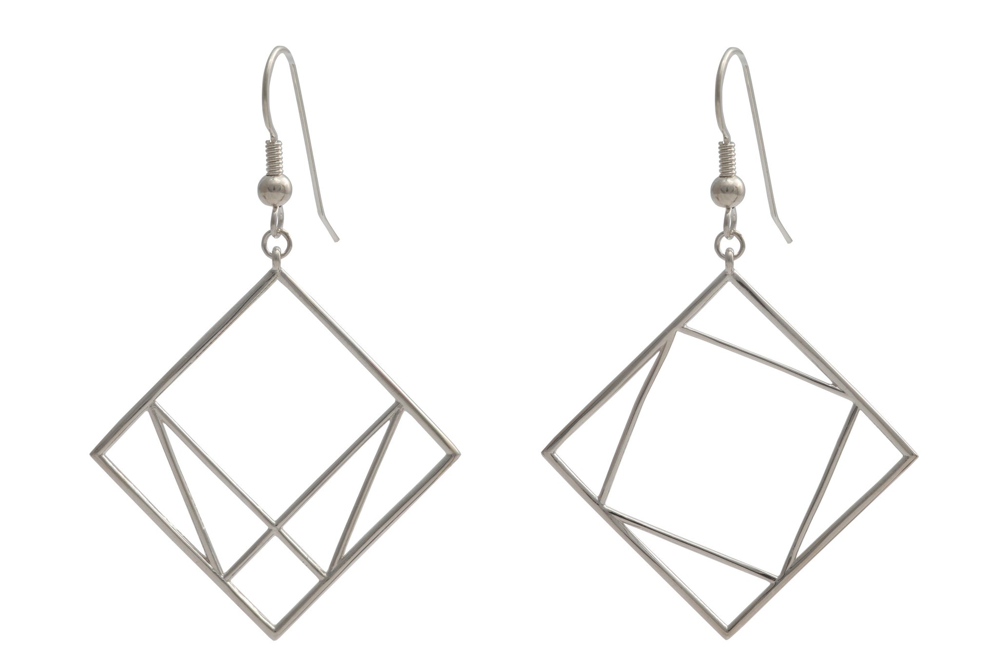 Wear a mathematical proof! These stunning sterling silver earrings feature the iconic Pythagorean Theorem - when worn together, the left and right pieces demonstrate the geometric relationship that a² + b² = c².